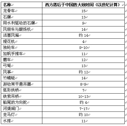 某些机械和其他技术超前西方国家简表